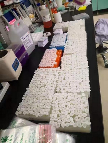 準備寄出的菌株 “今年的團圓飯和年夜飯合二為一了!感謝家人的理解!新年平安,國泰民安!”除夕當天,廣東省實驗動物監測所(以下簡稱動監所)新檢測技術中心負責人叢鋒仍堅守在崗位上。他的朋友圈記錄下了這一天的繁忙工作狀態。