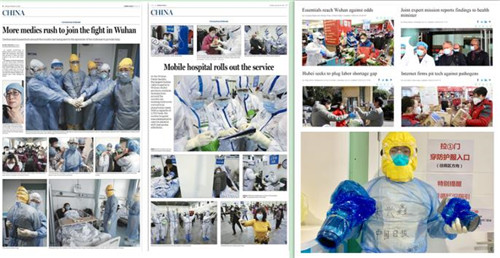 中國日報社堅決貫徹黨中央決策部署,先后于1月31日、2月4日、2月14日派出三批記者赴武漢與湖北記者站匯合。前方的12名黨員成立了臨時黨支部,他們深入醫院、社區、工地、機場、車站、發布會等地獲取一手信息,在抗擊疫情的第一線奔走記錄,在沒有硝煙的戰場上默默奉獻。