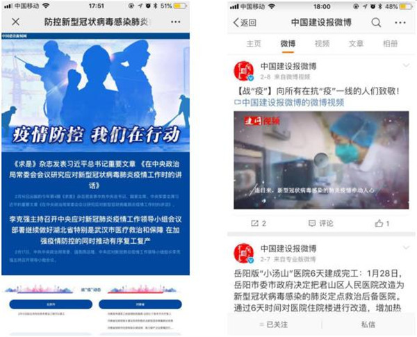 新冠肺炎疫情發生以來,住房和城鄉建設部中國建設報社堅決貫徹落實習近平總書記重要指示批示精神和黨中央、國務院決策部署,在部黨組的堅強領導下,堅持疫情防控、輿論宣傳兩手抓、兩手硬,以強有力的宣傳教育和輿論引導工作,激發和凝聚住房和城鄉建設全行業眾志成城抗擊疫情的強大力量。 以“兩微一端”等新媒體為主要平臺,不間斷報道全行業貫徹落實黨中央、國務院決策部署抗擊疫情的行動和舉措。