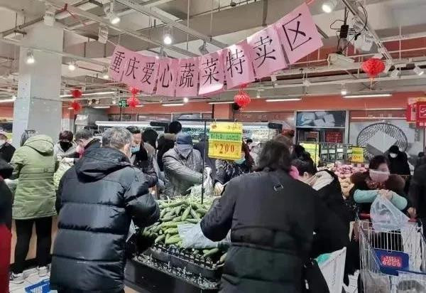 臨!敖ㄖ啤 1月27日大年初三,武漢中商、中百、武商三大超市門店內,懸掛著“重慶愛心蔬菜特賣區”條幅的專柜尤為顯眼。不少市民駐足選購,熱鬧的采買現場讓人很難想象,四天前這里還是“一菜難求”。