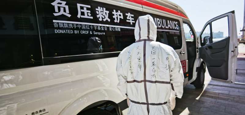 來到武漢后,50歲的王學軍第一次穿起了紙尿褲。 王學軍是青海紅十字醫院主任醫師、中國紅十字會救護轉運車隊青海隊隨車醫生,一位有著26年臨床經驗和18年黨齡的共產黨員。