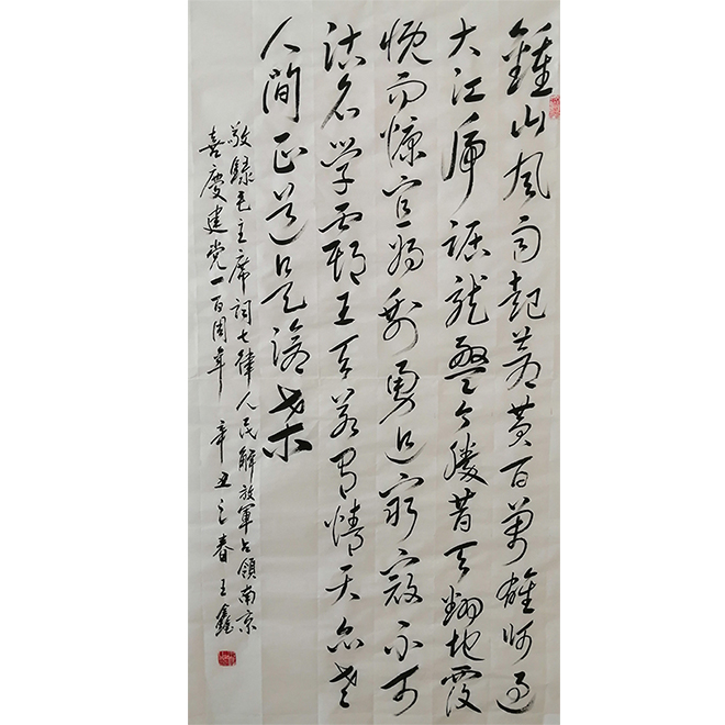 為熱烈慶祝中國共產黨成立100周年,引導中央和國家機關離退休干部深入學習黨的光榮歷史,弘揚紅色傳統,傳承紅色基因,牢記初心使命,堅定不移地聽黨話、跟黨走,激勵老同志發揮自身優勢,積極投身全面建設社會主義現代化國家的偉大事業,中央和國家機關老年大學組織開展“回望百年路 永遠跟黨走”慶祝建黨100周年書畫攝影云展覽;顒拥玫嚼夏甏髮W學員們的積極響應,他們通過書法、繪畫、攝影等藝術形式,書寫了中華民族的盛世華章、描繪祖國大好河山、抓拍了幸福生活瞬間,抒發了對黨的熱愛之情,集中展示了老年大學教學成果;顒悠陂g,共收到作品近200幅,經過專家評選,114幅作品入展。其中,書法作品40幅,繪畫作品25幅,攝影作品33幅,PS作品16幅。