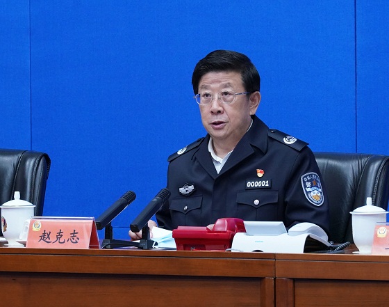 2月4日,公安部召開應對新型冠狀病毒感染肺炎疫情工作第三次全國公安機關視頻會議,國務委員、公安部黨委書記、部長趙克志出席并講話。(圖:滿博)