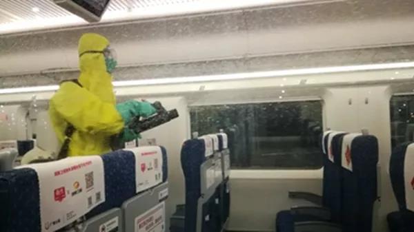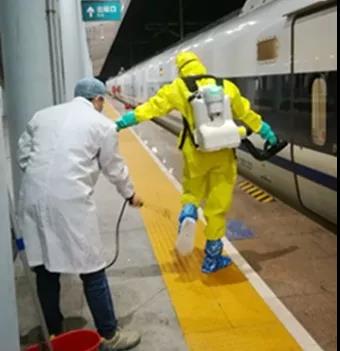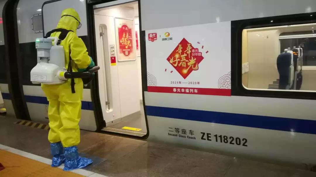 他們穿著防護服,背著近20公斤重的噴霧箱對車廂內進行應急消毒,空氣中消毒水的氣味,是給旅客的定心丸。