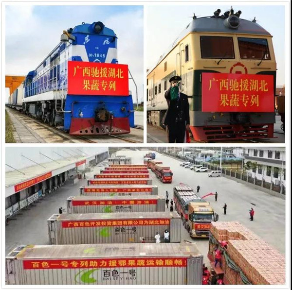 在廣西,自治區商務廳“秒轉發”呼吁各地市支援,僅用16個小時,200余噸物資便已正式裝車,并確保以每周兩班冷鏈專列的頻率向湖北輸送果蔬物資。目前,第六班專列正在駛往湖北省黃岡市。