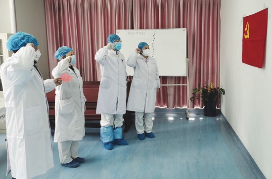 隨著莊嚴的誓詞,在長航總醫院腦科黨總支書記諶德雄的帶領下,兩名隔離病房的醫務人員第一線入黨。