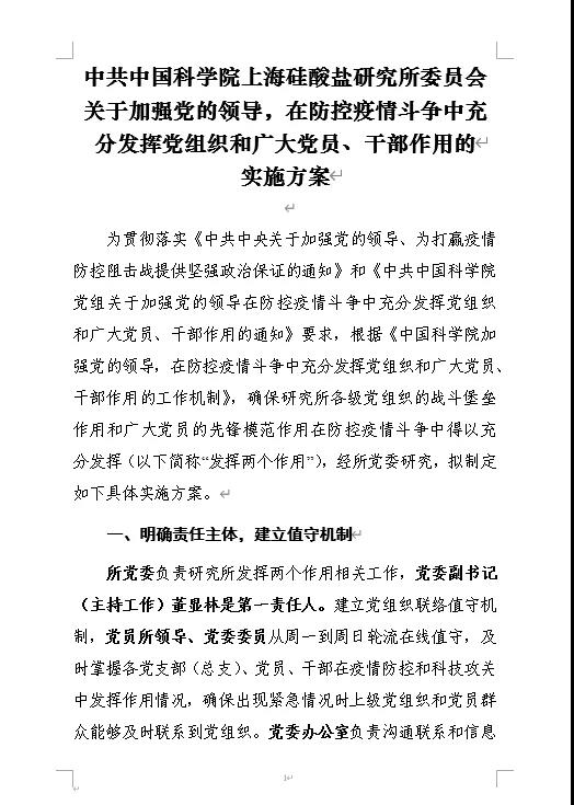 上海硅酸鹽所將進一步發揮基層黨組織的戰斗堡壘作用和共產黨員的先鋒模范作用,堅定信心,勠力同心,狠抓落實,科學防控,全力奪取疫情防控的勝利。