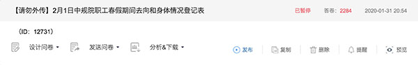 在全國抗疫的同時,中規院第一時間響應住房和城鄉建設部要求,開展全院職工情況填報統計工作。針對全院組織機構數量龐大、人員辦公條件不一、京外機構眾多、春節期間返鄉人員較多等特點,為減輕手工填報的繁累,利用新技術高效、快捷完成任務,信息中心女職工積極成立技術工作小組,配合院內有關部門開展全院職工信息統計工作。為使職工填報信息更加省時、省力、高效、快捷,工作組需要協調系統開發團隊、編輯統計信息、實時監測后臺填報情況、通報填報進度、篩選統計數據等。面對近2000人的上萬條數據,工作組每天都要忙到深夜。但幾位女職工毫無怨言,克服時間緊、任務重以及老人孩子需要照顧等困難,最終順利完成統計工作,為后續工作奠定了堅實基礎,為保障我院職工順利快捷開展疫情防疫工作提供了有利支撐。