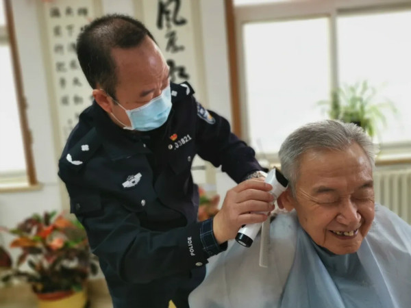 東堂子覃叔明同志為老同志義務理發