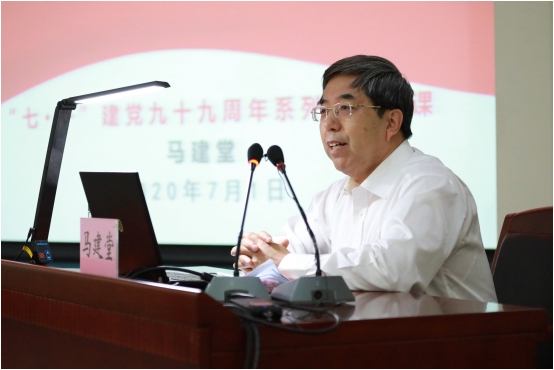 馬建堂在黨課中指出,中國共產黨自1921年成立以來,櫛風沐雨、砥礪前行99年,走過了艱苦卓絕的革命年代、篳路藍縷的建設時期,開啟了波瀾壯闊的改革開放偉大征程,迎來了中華民族從站起來、富起來到強起來的偉大飛躍。中國共產黨一路走來,由小到大、從弱向強,由50多名黨員到9191.4萬名黨員,實現了星火燎原,譜寫了一個政黨不忘初心、牢記使命的歷史詩篇。中國共產黨一路走來,涌現出無數為了民族獨立拋頭顱、灑熱血的革命先烈,涌現出無數為了國家富強舍生忘死的英雄模范。他們胸懷崇高的理想和對祖國人民深沉摯誠的熱愛,在救國救民的道路上寧死不屈、永不言棄,碧血丹心、舍生取義,給我們留下了可歌可泣的英雄故事、感天動地的偉大情操、革命的英雄主義和樂觀主義精神,鑄就了一座座不朽的歷史豐碑。他們忠于祖國、熱愛人民、追求真理、堅持理想、不怕犧牲、敢于勝利的崇高精神,是我們民族精神財富寶庫的重要組成部分,是激勵我們繼往開來、開拓進取的強大精神動力。