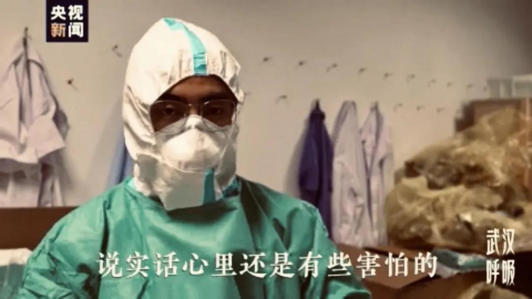▲記者張鵬軍在《武漢醫院隔離區紀實》系列片中出鏡報道。