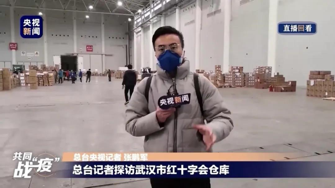 ▲記者張鵬軍直播探訪武漢紅十字會倉庫。