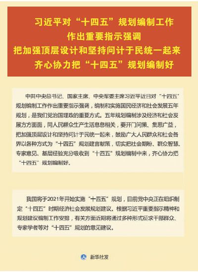 “‘十四五’時期是我國全面建成小康社會、實現第一個百年奮斗目標之后,乘勢而上開啟全面建設社會主義現代化國家新征程、向第二個百年奮斗目標進軍的第一個五年,我國將進入新發展階段。凡事預則立,不預則廢。我們要著眼長遠、把握大勢,開門問策、集思廣益,研究新情況、作出新規劃?!?/p>