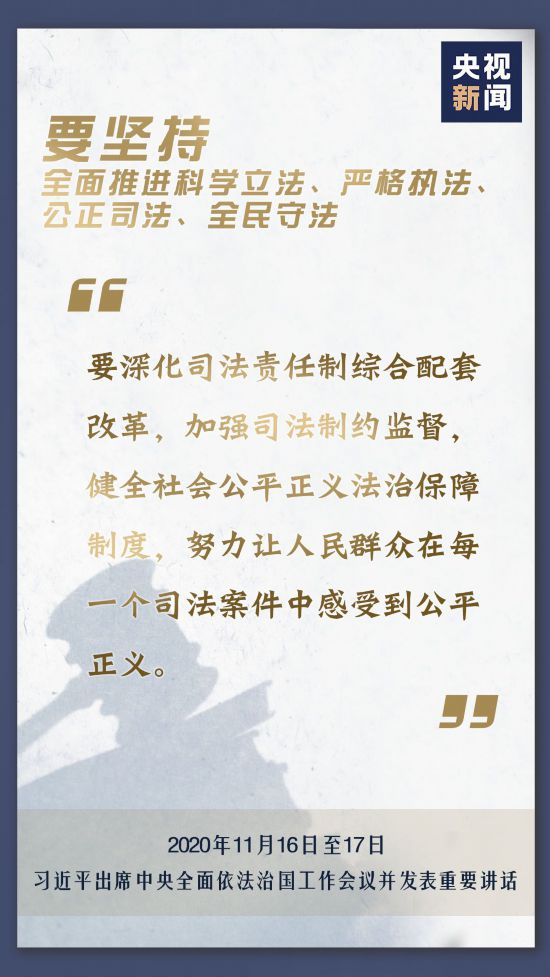 中央全面依法治國工作會議11月16日至17日在北京召開,中共中央總書記、國家主席、中央軍委主席習近平出席會議并發表重要講話。會上,習近平對當前和今后一個時期推進全面依法治國要重點抓好的工作提出了11個方面的要求。