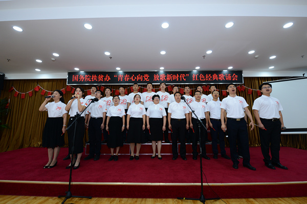 綜合司黨支部黨員干部在國務院扶貧辦“青春心向黨 放歌新時代 ”紅色經典歌誦會上演唱 《不忘初心》 和 《歌唱祖國》。
