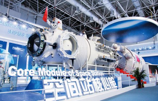 黨的十八大以來,中央企業認真落實創新驅動發展戰略,涌現一大批具有世界先進水平的重大科技成果。圖為2018年11月6日,在珠海舉辦的第十二屆中國國際航空航天博覽會上展出的由中國航天科技集團研發的中國空間站核心艙模型。國務院國資委供圖 代振瑩/攝