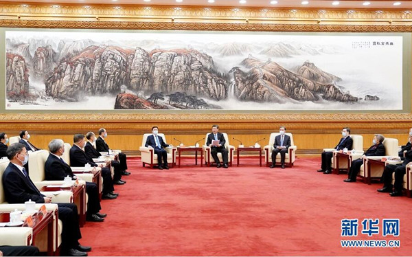 習近平強調,中共十九屆五中全會為我國未來5年及15年的發展指明了方向,為全面建設社會主義現代化國家擘畫了宏偉藍圖。希望大家充分發揮人才薈萃、智力密集的優勢,開展戰略性、宏觀性研究,為中共中央決策提供更多務實管用的對策建議。要借鑒脫貧攻堅民主監督的好經驗、好做法,謀劃部署好新的專項民主監督工作。全國工商聯要圍繞促進非公有制經濟健康發展和非公有制經濟人士健康成長的主題履行職責、發揮作用,加強政治引領和思想引導。要發揮黨外知識分子的專業優勢,在做好疫情防控和推動經濟社會發展等方面作出新的貢獻。