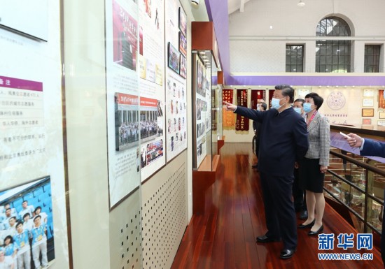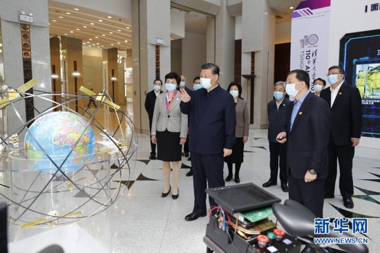 清華大學主樓二層,展示了學校近年來重點教學科研成果。習近平聽取了關于增強自主創新能力、助力世界主要科學中心和創新高地建設、提高人文社會學科教育研究水平等情況介紹,對清華大學取得的成績給予充分肯定。習近平指出,要堅持中國特色社會主義教育發展道路,充分發揮科研優勢,增強學科設置的針對性,加強基礎研究,加大自主創新力度,并從我國改革發展實踐中提出新觀點、構建新理論,努力構建中國特色、中國風格、中國氣派的學科體系、學術體系、話語體系。