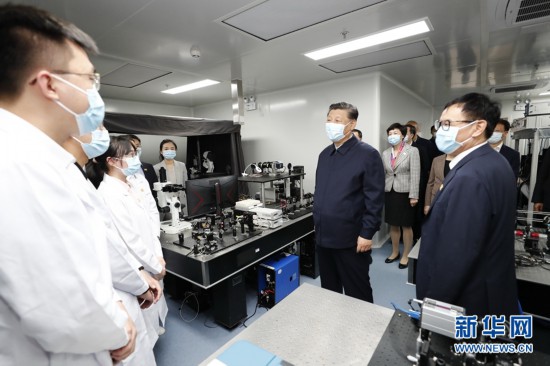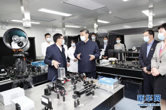 4月19日,在清華大學建校110周年校慶日即將來臨之際,中共中央總書記、國家主席、中央軍委主席習近平來到清華大學考察。這是習近平在清華大學成像與智能技術實驗室同師生們親切交談。新華社記者 黃敬文 攝