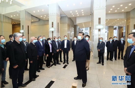 4月19日,在清華大學建校110周年校慶日即將來臨之際,中共中央總書記、國家主席、中央軍委主席習近平來到清華大學考察。這是習近平在清華大學主樓二層大廳看望部分老教授、中青年骨干教師代表并同他們親切交談。新華社記者 鞠鵬 攝