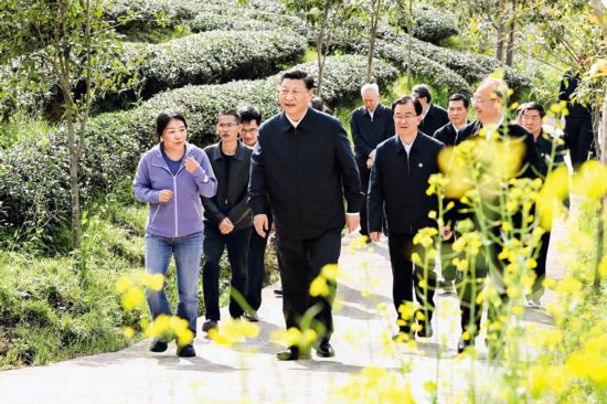 2021年3月22日至25日,中共中央總書記、國家主席、中央軍委主席習近平在福建考察。這是22日下午,習近平在南平武夷山市星村鎮燕子窠生態茶園,察看春茶長勢,了解當地茶產業發展情況。 新華社記者 鞠鵬/攝