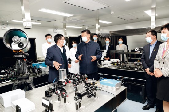 2021年4月19日,在清華大學建校110周年校慶日即將來臨之際,中共中央總書記、國家主席、中央軍委主席習近平來到清華大學考察。這是習近平在清華大學成像與智能技術實驗室同師生們親切交談。 新華社記者 黃敬文/攝
