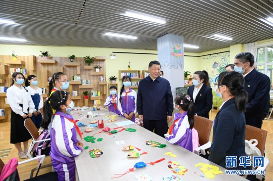 6月7日至9日,中共中央總書記、國家主席、中央軍委主席習近平在青??疾?。這是7日下午,習近平在西寧市城西區文匯路街道文亭巷社區閱覽室,了解社區向青少年提供公益性課后托管服務情況。新華社記者 李學仁 攝