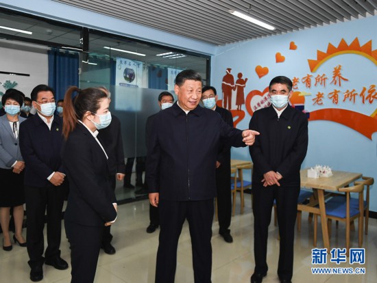 6月7日至9日,中共中央總書記、國家主席、中央軍委主席習近平在青??疾?。這是7日下午,習近平在西寧市城西區文匯路街道文亭巷社區幸福食堂,了解社區向老年人提供餐飲服務情況。新華社記者 燕雁 攝