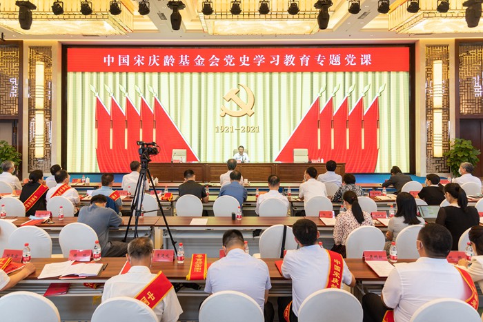 按照中國宋慶齡基金會黨史學習教育工作安排,7月14日上午,黨組書記、常務副主席杭元祥同志以“弘揚偉大建黨精神,矢志踐行初心使命,為實現第二個百年奮斗目標作出新貢獻——深入學習貫徹習近平總書記‘七一’重要講話精神”為題,為全會黨員干部講專題黨課。黨組成員、副主席井頓泉同志主持會議,黨組成員、副主席于群同志出席會議。黨史學習教育中央第十六指導組組長孔泉同志到會指導,中央紀委國家監委駐中央統戰部紀檢監察組有關同志出席會議。