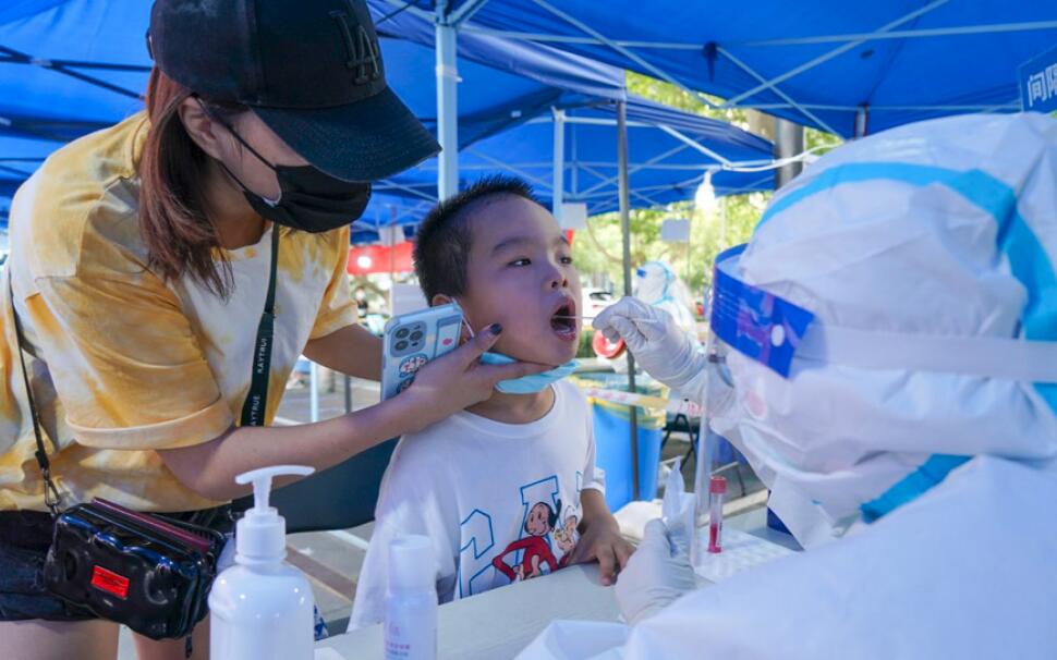>> 7月29日,一位小朋友在南京市玄武區新街口街道北門橋社區核酸檢測點進行核酸檢測取樣。