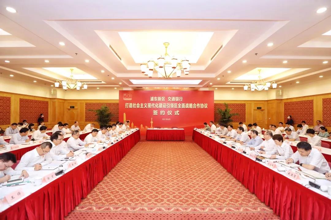 8月31日上午,浦東新區和交通銀行“打造社會主義現代化建設引領區全面戰略合作協議”簽署活動在新區辦公中心舉行。
