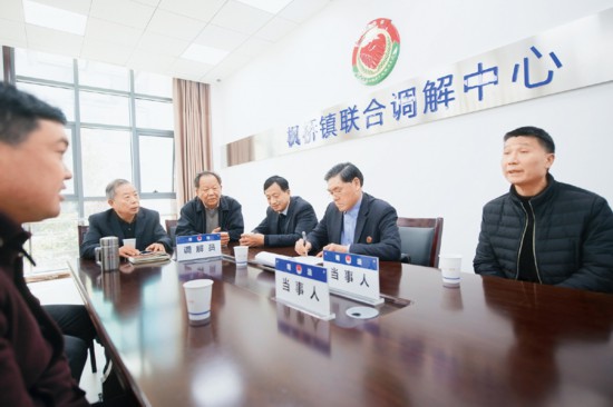 “楓橋經驗”是創新群眾工作方法,善于運用法治思維和法治方式解決涉及群眾切身利益矛盾和問題的典范。圖為2019年4月1日,在楓橋鎮聯合調解中心,工作人員在調解一起合資糾紛。 新華社記者 翁忻旸/攝