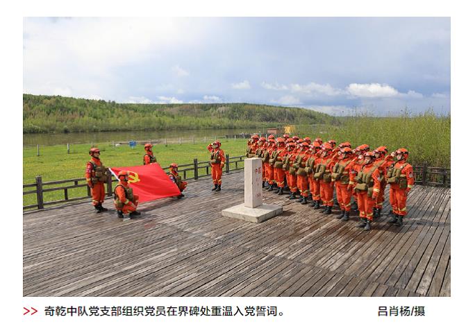 內蒙古自治區森林消防總隊大興安嶺支隊莫爾道嘎大隊七中隊,又名“奇乾中隊”,組建于1963年,常年駐守在原始林區腹地,主要擔負大興安嶺北部原始林區95萬公頃原始森林戰略防護和200余公里中俄邊境火堵截任務。建隊以來,中隊黨支部用實際行動在防火滅火一線踐行初心使命,守護著祖國北疆的萬里綠色長城。