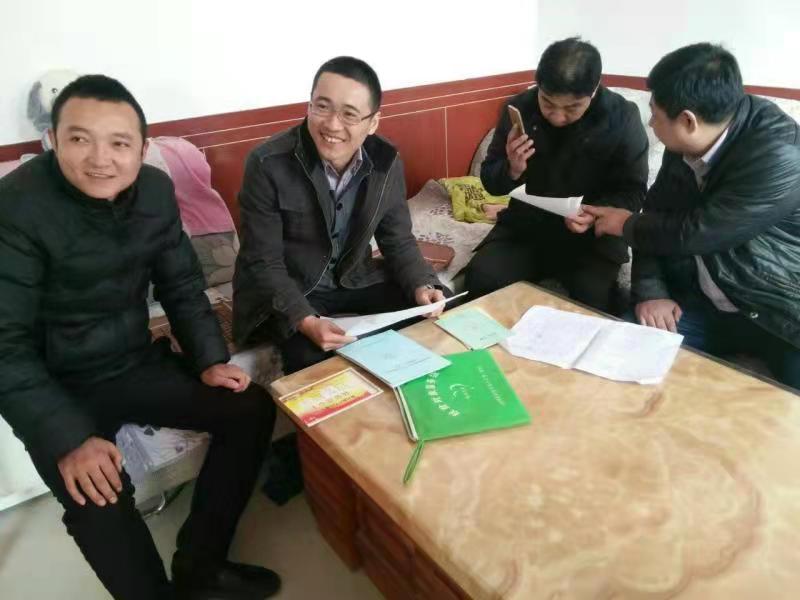 孫元辛(左二)與通渭縣發改委、財政局干部一起開展“精準扶貧”入戶調查。