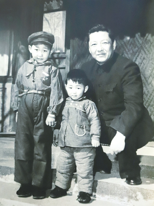 1958年,習仲勛(右)與習近平(左)、習遠平在一起