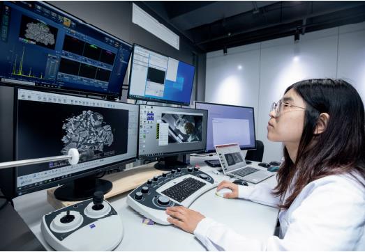 >> 中科院科研人員在場發射掃描電子顯微鏡下對嫦娥五號月球樣品進行圖像和成分分析。