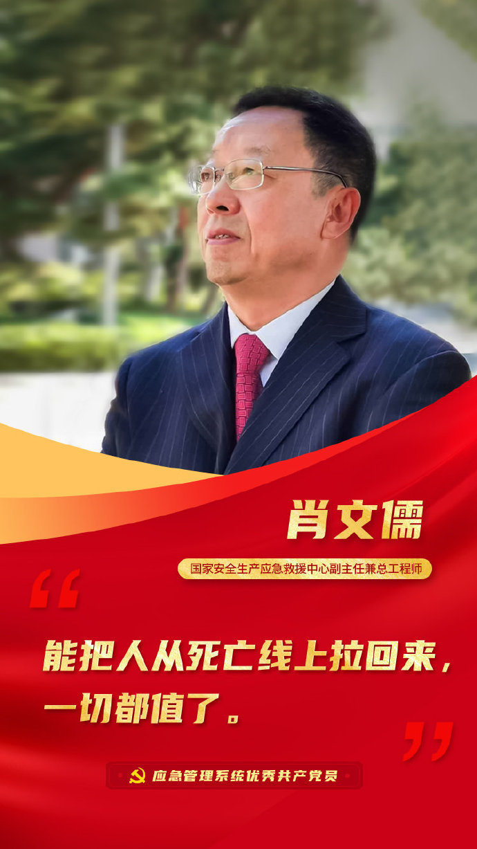 他是肖文儒,國家安全生產應急救援中心副主任兼總工程師,從事應急救援工作38年,直面700多起事故,參與救出1000余名被困人員?!白鳛橐幻h員,我的職責是救人,不管吃多少苦,受多少累,能把人從死亡線上拉回來,一切都值了?!毙の娜逭f。