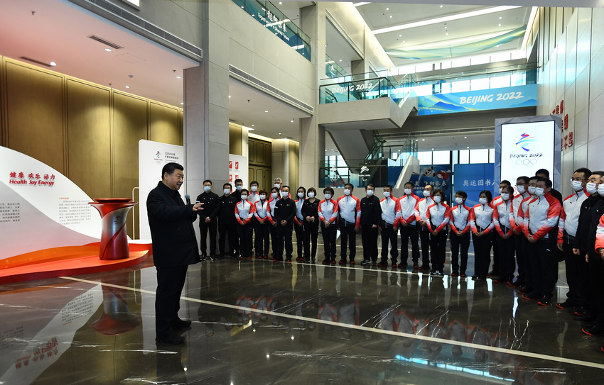 4日,習近平總書記先后來到國家速滑館,北京冬奧會、冬殘奧會主媒體中心,北京冬奧村(冬殘奧村),北京冬奧運行指揮部調度中心,二七廠冰雪項目訓練基地,實地了解北京2022年冬奧會、冬殘奧會籌辦備賽工作情況,看望慰問運動員、教練員、運行管理人員、服務保障人員、科研人員、媒體記者和志愿者等,向大家致以新年祝福。