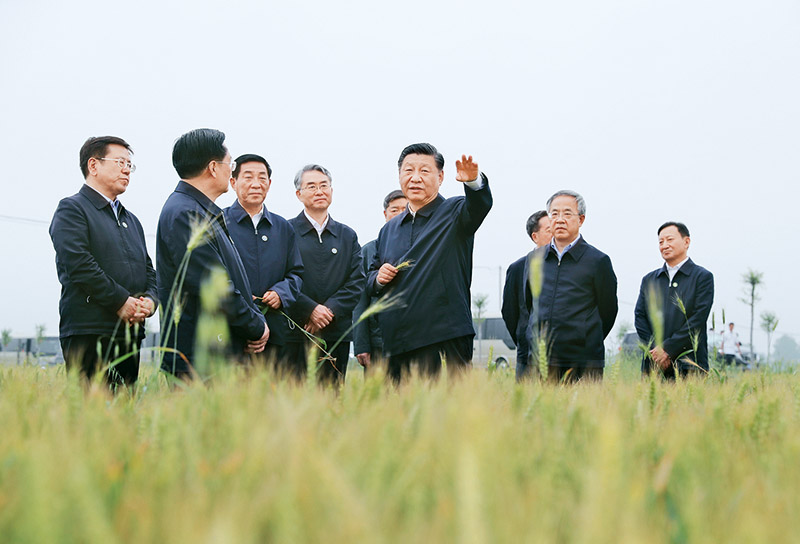 2021年9月13日至14日,中共中央總書記、國家主席、中央軍委主席習近平在陜西省榆林市考察。這是13日下午,習近平在米脂縣銀州街道高西溝村臨時下車,察看糧食作物長勢,同正在田間勞作的老鄉拉家常。 新華社記者 李學仁/攝
