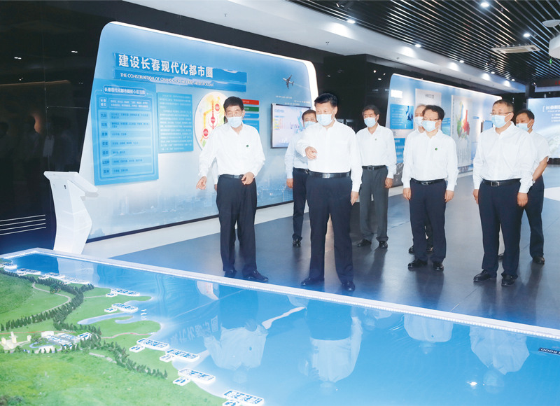 2020年7月22日至24日,中共中央總書記、國家主席、中央軍委主席習近平在吉林省考察。這是7月23日下午,習近平考察長春新區規劃展覽館,了解新區規劃建設情況。新華社記者 王曄/攝
