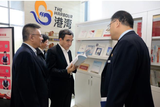 >> 作者 (右二) 在基層黨建聯系點中國建設銀行陜西省分行西安曲江支行調研。