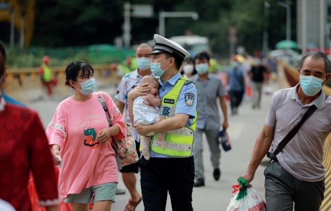 >>2021年8月10日,在湖北省宜昌市秭歸縣九畹溪大橋封閉維修現場,執勤民警向一