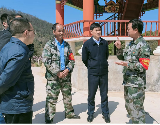 2022年3月9日,作者(右二)到楚雄州祿豐市土官鎮寨腳社區調研鄉村振興駐村工作隊員選派管理情況。