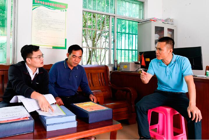 >> 2021年11月13日,在海南省瓊中黎族苗族自治縣灣嶺鎮加章村委會,紀檢監察干部(左)在查閱鄉村振興及村級財務支出相關材料。