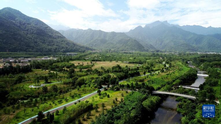 這是2019年7月26日拍攝的陜西省西安市長安區秦嶺違建別墅拆除后建設的秦嶺和諧森林公園(無人機照片)。新華社記者 劉瀟 攝