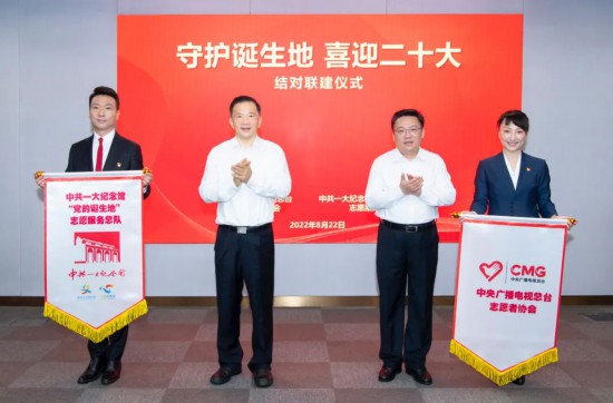 慎海雄一行首先來到位于上海市黃浦區興業路76號的中共一大紀念館,詳細聽取了紀念館講解員的介紹,并出席總臺志愿者協會與中共一大紀念館“黨的誕生地”志愿服務總隊結對聯建儀式。