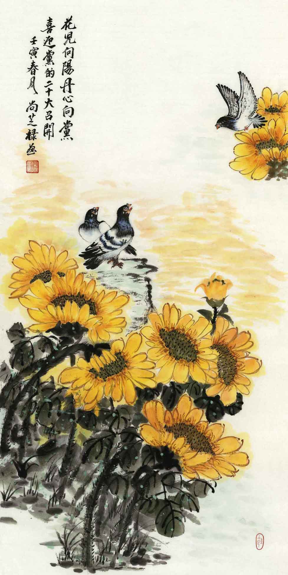 《花兒向陽丹心向黨》(中國畫) 尚芝祿(民政部)