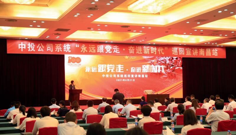 >> 2021年,中投公司黨委以“永遠跟黨走 · 奮進新時代”“學習‘七一’重要講話 · 弘揚偉大建黨精神”為主題,赴蘭州、西安、南昌、武漢等 8個城市開展兩輪巡回宣講,圖為南昌站宣講。