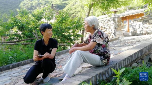 劉桂珍(左)和村民聊家常(2022年7月6日攝)。新華社發