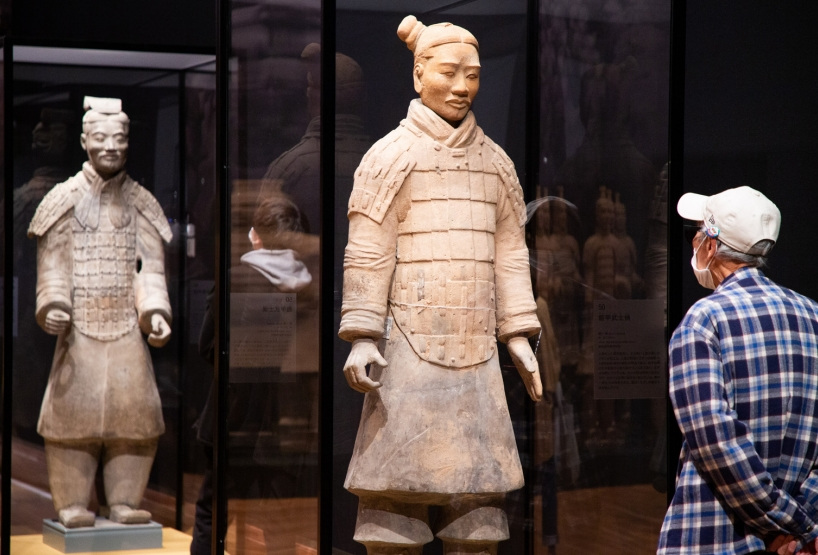 >> 3月25日,觀眾在日本京都舉辦的 《兵馬俑與古代中國——秦漢文明的遺產》 文物展上參觀。